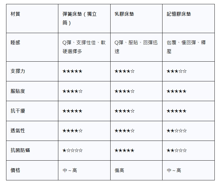 床墊推薦懶人包|彈簧、乳膠、記憶膠怎麼選?專家教你挑對不後悔