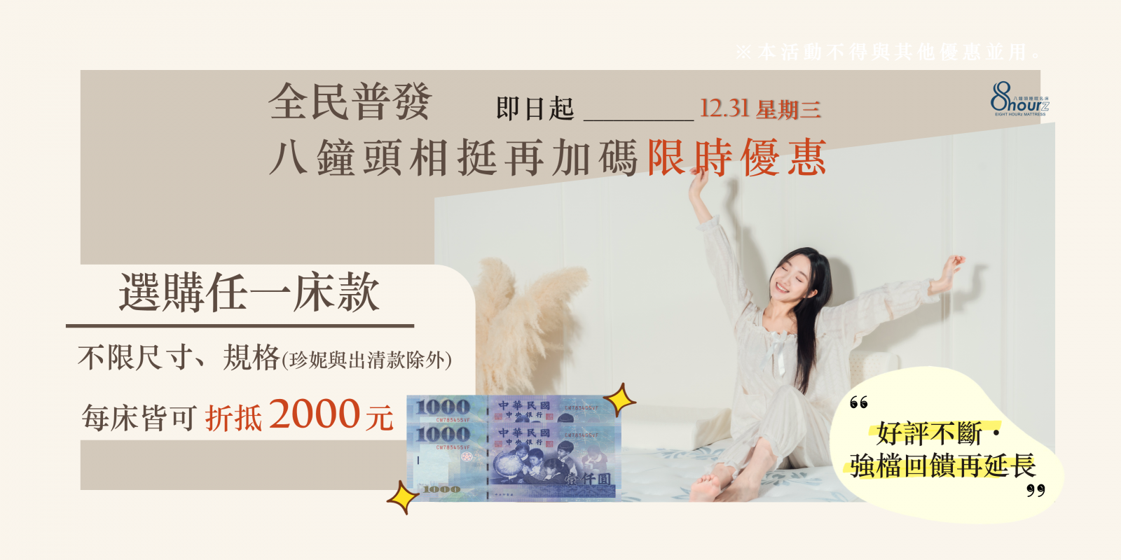八鐘頭全館床墊 不限尺寸、不限規格(珍妮與出清款除外)通通現折2000元🛏️